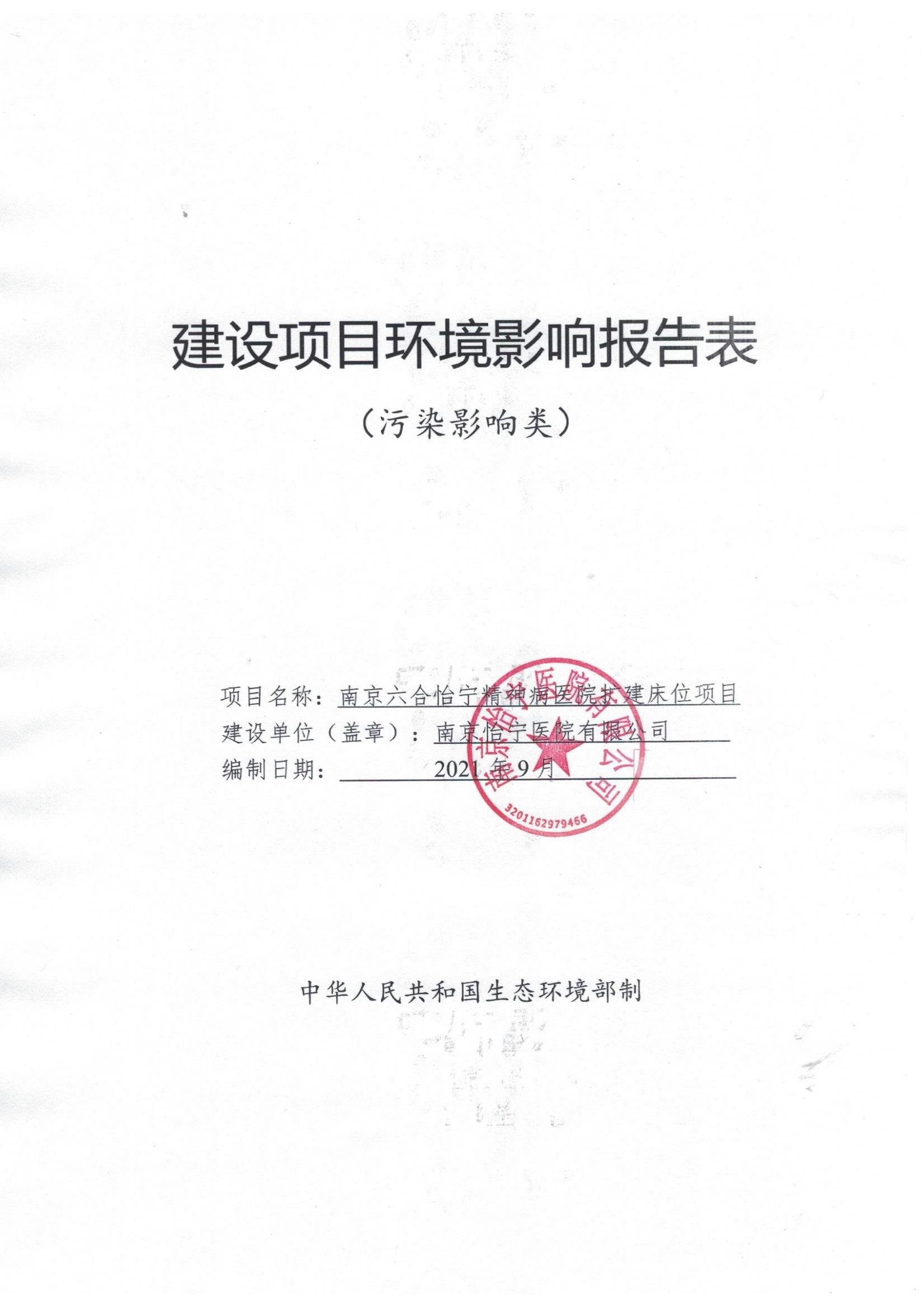 南京六合怡寧精神病醫院擴建床位項目公示